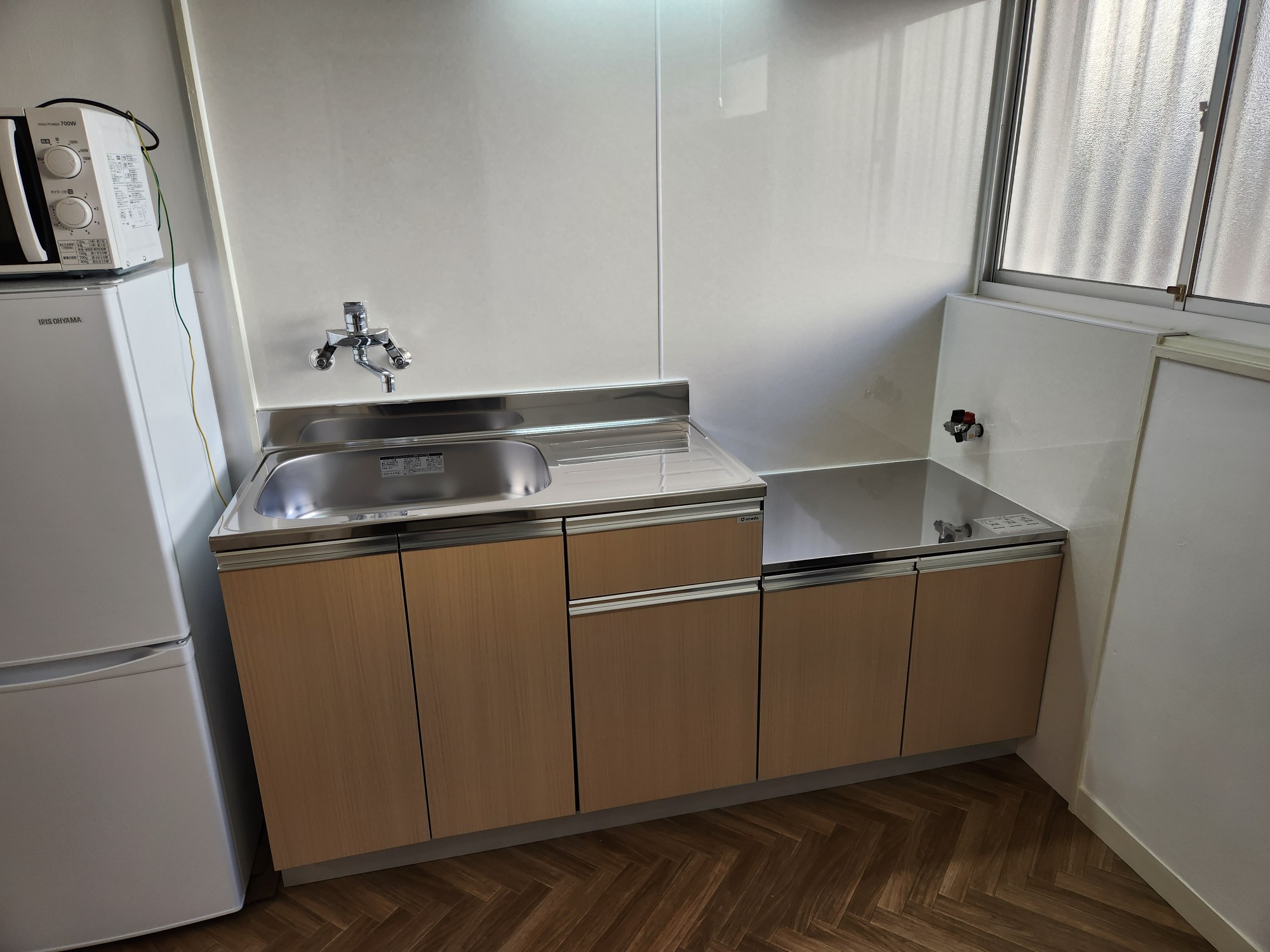 2口ガスコンロのキッチンには窓もあるので、ニオイ対策や風通しも♪収納も大きめのクローゼットがあるので助かります!